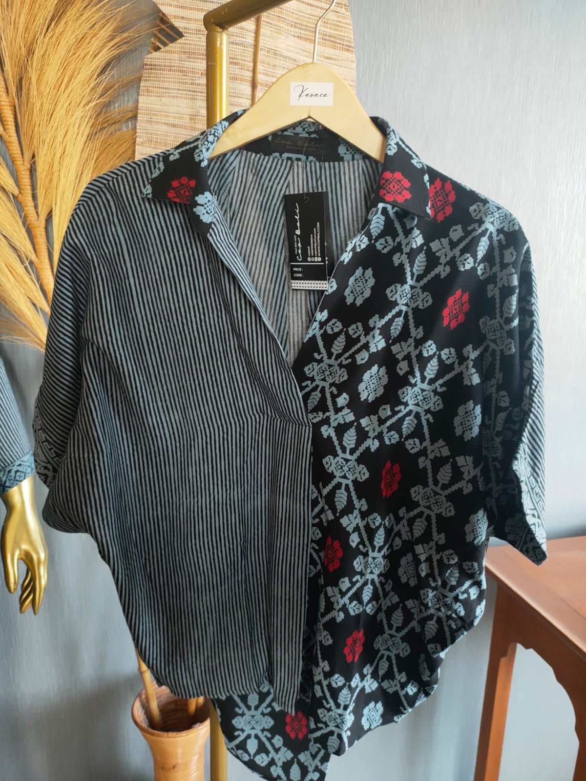 Top Cewek Garis Rayon Lasem Grey(All Size)