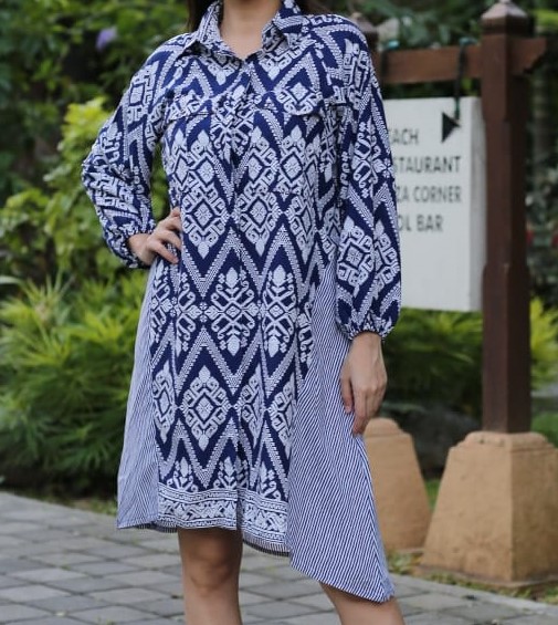 Dress Kantong Rayon Segitiga Navy(All Size)