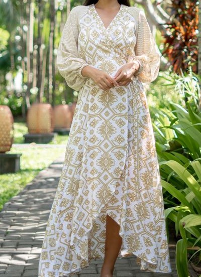Dress Kimono Panjang Rayon Patra White Gold(All Size)