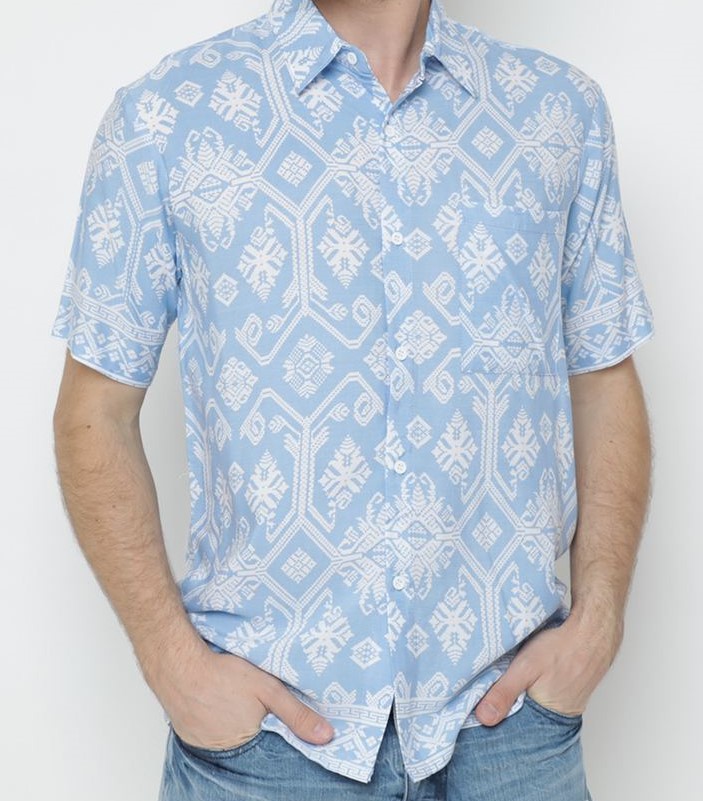 Shirt Men Rayon Patra Light Blue(XL)